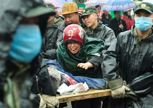 四川地震都江堰災(zāi)區(qū),一位失去了親人的災(zāi)民嚎啕大哭。