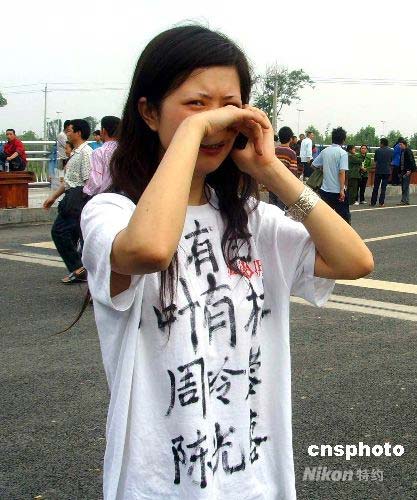 綿陽(yáng)市抗震救災(zāi)最大的救助點(diǎn)九州體育館容納了2萬(wàn)多名來(lái)自北川、安縣等地的災(zāi)民, 5月15日上午,北川地震災(zāi)民家屬葉婷焦急地尋找親人。中新社發(fā) 霍潺 攝