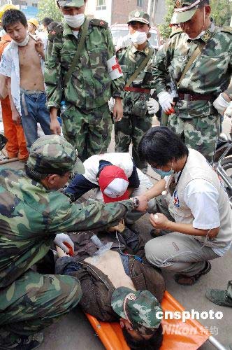 圖:解放軍在北川地震重災(zāi)區(qū)救出幸存者