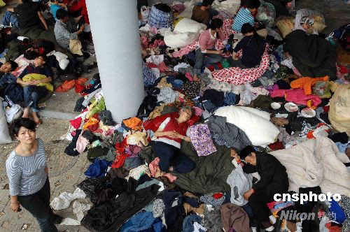五月十五日,從四川綿陽(yáng)北川羌族自治縣等災(zāi)區(qū)救出的地震災(zāi)民被安置在成都九洲體育館救助站接受救助,高峰期該救助站曾有三萬(wàn)余名災(zāi)民聚集。中新社發(fā) 陳文 攝