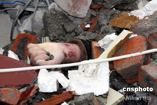 5月13日,被掩埋的北川中學學生。北川縣是此次四川大地震中的重災區(qū)之一。中新社發(fā) 張雷 攝