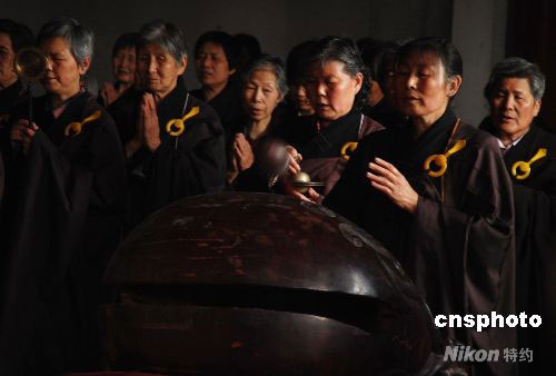5月15日,江蘇無錫南禪寺舉行賑災祈福吉祥法會。地震發(fā)生后,中國國家宗教局十三日立即向受災地區(qū)捐款,同時向在北京的全國性宗教團體等發(fā)出通知,號召他們緊急開展向地震災區(qū)捐款活動。中新社發(fā) 楊慧峰 攝