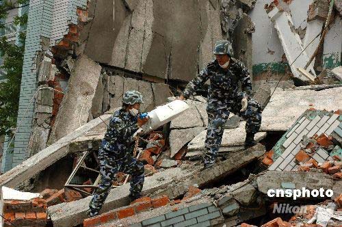 5月16日, 2750名海軍陸戰(zhàn)隊官兵分三個梯隊相繼順利到達四川地震災(zāi)區(qū),立即展開救援行動。第一梯隊到達綿竹縣漢旺鎮(zhèn)的760名官兵在災(zāi)情最嚴(yán)重的地方進行搶險救援,并在救援中使用了生命探測儀。目前,世界上只有美國和英國有這樣的生命探測儀,地震災(zāi)區(qū)中海軍官兵使用的是中國自行研制的,僅在漢旺鎮(zhèn),他們就有5臺這樣的儀器。圖為海軍陸戰(zhàn)隊官兵在四川綿竹縣漢旺鎮(zhèn)使用生命探測儀進行搜救。中新社發(fā) 李唐 攝