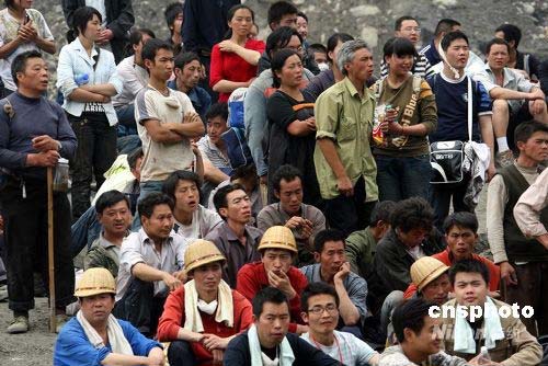 圖:四川汶川地震災(zāi)民等待轉(zhuǎn)移都江堰