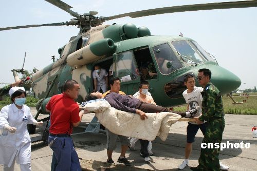 北川重傷員通過(guò)“空中生命線(xiàn)”空運(yùn)到眉山救治