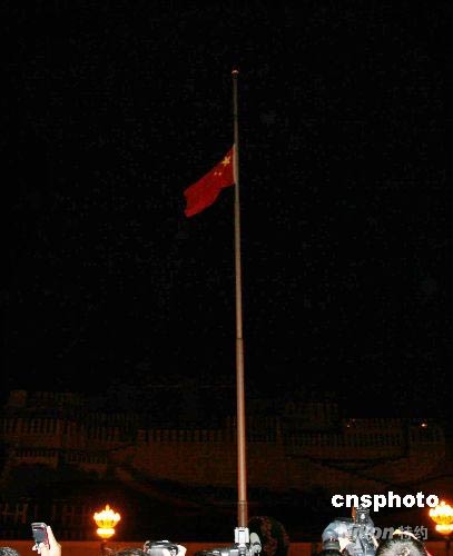 五月十九日凌晨零點時分,西藏自治區(qū)在布達(dá)拉宮廣場舉行降半旗儀式,向“五·一二”四川大地震死難同胞致哀,此舉為新中國成立以來,布達(dá)拉宮廣場首次為死難普通民眾降半旗。中新社發(fā) 柳俊武 攝