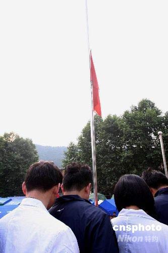 五月十九日清晨,四川省重災(zāi)區(qū)青川縣人民在青川中學(xué)舉行降半旗儀式,向“五·一二”四川汶川大地震死難同胞致哀。中新社發(fā) 黃榮 攝
