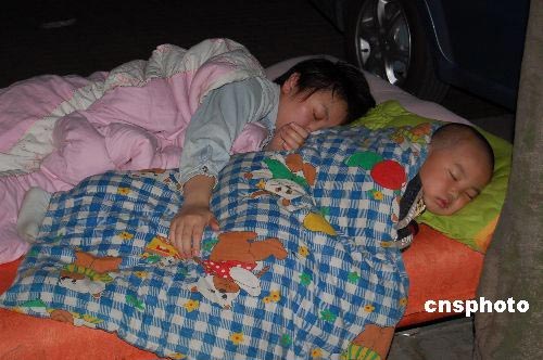 5月20日凌晨,四川成都眾多市民紛紛露宿街頭防止余震傷害。四川省地震局19日晚發(fā)出公告稱,汶川余震活動水平為6—7級左右,5月19日至20日汶川地震區(qū)附近余震發(fā)生的可能性較大。中新社發(fā) 劉萬強(qiáng) 攝