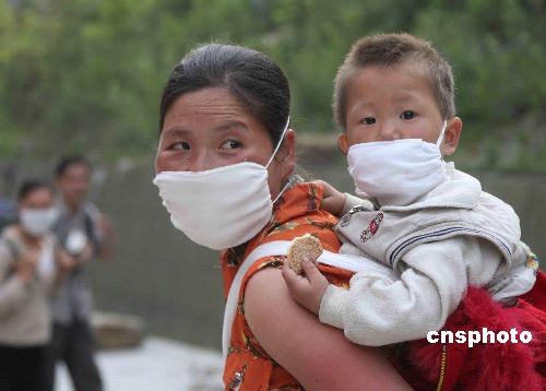 四川地震災(zāi)區(qū)中的一對母子。 中新社發(fā) 曾憲平 攝