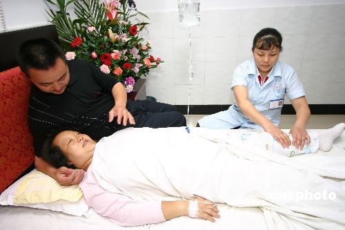 5月21日,護士給汶川來的產(chǎn)婦陳梅談心。17日上午10時許,重慶市永川區(qū)婦幼保健院順利地把來自四川省汶川地震災(zāi)區(qū)的陳梅產(chǎn)婦生下一男嬰,那是她經(jīng)過10小時,徒步32公里,從汶川震區(qū)撤離出來,才換來的小生命。嬰兒從出生以來,醫(yī)院讓小生命住進嬰兒培養(yǎng)箱,以促進小生命的身體健康。中新社發(fā) 陳仕川 攝