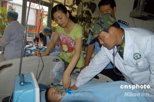 5月21日,在四川汶川5·12大地震中被救出后向解放軍“行隊(duì)禮”的北川3歲男孩郎錚在綿陽市解放軍某醫(yī)院成功完成斷臂續(xù)接手術(shù)。給小朗錚主刀的手術(shù)醫(yī)生、來自第四軍醫(yī)大學(xué)的張教授說郎錚手掌饒神經(jīng)雖已損傷,但三個(gè)月后會(huì)恢復(fù)。目前朗錚正在綿陽市解放軍某醫(yī)院繼續(xù)接受治療。中新社發(fā) 成和平 攝