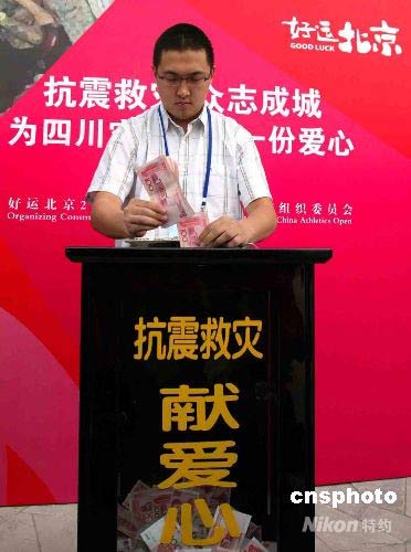 “鳥巢”田徑比賽部分票款捐獻地震災區(qū)