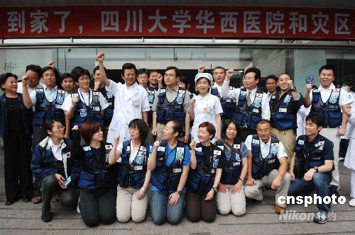 五月二十二日,日本國際緊急援助隊一行二十三人攜帶五噸醫(yī)療儀器、藥品等抵達成都,下午組成ICU、急診、血液透析三個小組進入華西醫(yī)院與中國醫(yī)護人員聯(lián)合展開救護。中新社發(fā) 陳文 攝