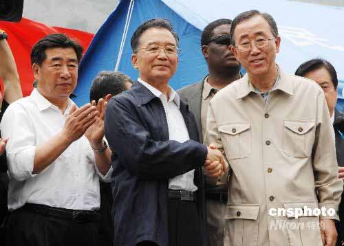 圖:溫家寶與潘基文在汶川映秀鎮(zhèn)會面
