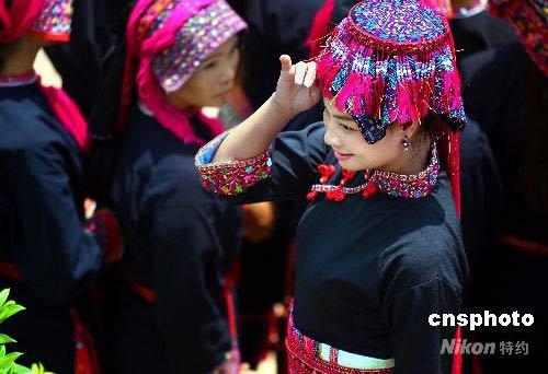 圖:苗族姑娘展示民族服飾吸引游客