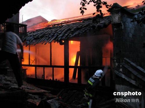 5月30日18時(shí)20分左右,福建寧德市醫(yī)院對面的木屋毗鄰區(qū)一民房發(fā)生火災(zāi),當(dāng)?shù)?0余名消防官兵經(jīng)過近2個小時(shí)的緊張撲救,終于將大火完全撲滅,所幸沒有造成人員傷亡。據(jù)悉,由于該地區(qū)民房多為木結(jié)構(gòu),且電線亂拉,存在嚴(yán)重的火災(zāi)隱患,今年1月24日,該地區(qū)也曾發(fā)生過大火,過火面積達(dá)600多平方米。目前火災(zāi)原因和損失還在進(jìn)一步調(diào)查中。中新社發(fā) 張彩林 攝
