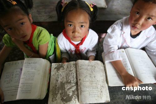 圖:渴望讀書的地震災(zāi)區(qū)的小學(xué)生