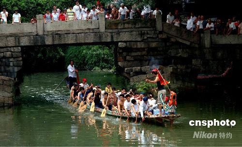 6月6日,福州臺(tái)江南公萬(wàn)壽村村民按當(dāng)?shù)匕倌昝袼自诃h(huán)村內(nèi)河舉行端午龍舟競(jìng)渡。據(jù)當(dāng)?shù)乩陷叴迕穹Q,自清朝道光年間開(kāi)始,該村就有端午節(jié)龍舟競(jìng)渡風(fēng)俗,沿襲至今。中新社發(fā) 劉可耕 攝