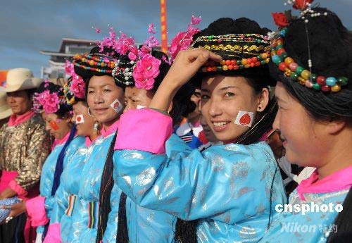 圖:"女兒國(guó)"的摩梭女歡慶奧運(yùn)圣火到來(lái)