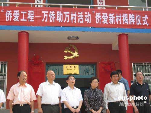 6月12日,國(guó)務(wù)院僑辦主任李海峰在陜西省北雙廟村參加全國(guó)第一個(gè)“僑愛新村”揭牌儀式,同時(shí)參加揭牌儀式的還有西安市市長(zhǎng)陳寶根、國(guó)務(wù)院僑辦國(guó)內(nèi)司司長(zhǎng)程鐵生、唐仲英基金會(huì)代表孫幼帆先生。中新社發(fā) 張珂 攝
