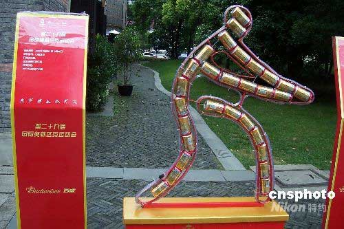 圖:上海易拉罐雕塑展示奧運項目