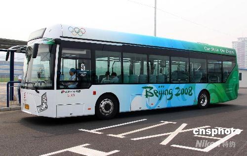 7月7日,專門(mén)為北京奧運(yùn)會(huì)運(yùn)動(dòng)員、隨隊(duì)官員和注冊(cè)記者提供出行服務(wù)的1200輛奧運(yùn)公交車(chē),開(kāi)始分批進(jìn)入奧運(yùn)村運(yùn)行。這些車(chē)輛均為12米長(zhǎng)的低地板無(wú)障礙空調(diào)新車(chē),是尾氣排放達(dá)到歐IV標(biāo)準(zhǔn)的柴油車(chē)或純天然氣車(chē)、純電動(dòng)車(chē)。圖為北京奧運(yùn)純電力公交車(chē)。中新社發(fā) 富田 攝