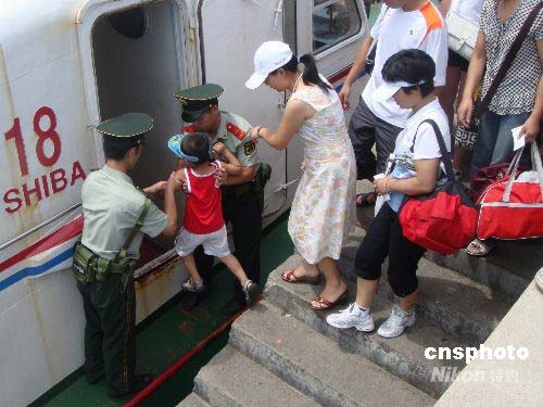 浙江省氣象臺7月17日上午發(fā)布臺風(fēng)警報,第7號熱帶風(fēng)暴“海鷗”8時已加強(qiáng)為臺風(fēng),位于溫州東南偏南650公里處,未來強(qiáng)度將逐漸增強(qiáng),將對浙江沿海地區(qū)造成較為嚴(yán)重的影響。面對來勢洶洶的臺風(fēng)“海鷗”,溫州市邊防支隊(duì)南麂邊防派出所立即啟動防臺工作預(yù)案,會同當(dāng)?shù)劓?zhèn)政府迅速做好南麂島游客的疏散撤離工作。截止7月17日13時,南麂島上的600余名游客已經(jīng)安全撤離。中新社發(fā) 吳水斌 攝