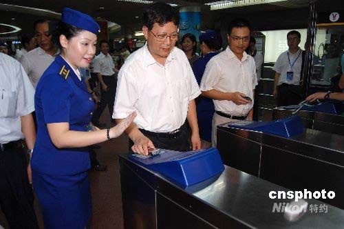 7月17日下午,“手機(jī)地鐵票”業(yè)務(wù)在廣州地鐵啟動(dòng),市民只需在廣州移動(dòng)營(yíng)業(yè)廳更換SIM卡加裝小天線(xiàn),就能實(shí)現(xiàn)手機(jī)支付地鐵票。中新社發(fā) 柯小軍 攝