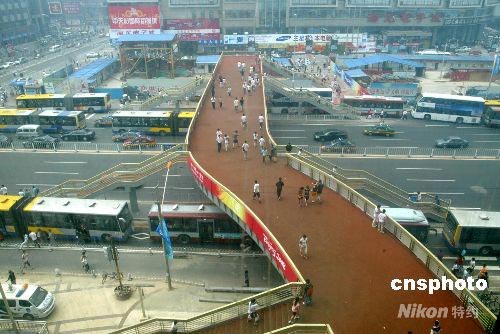 近日,北京市目前最寬的人行過街天橋在中關(guān)村核心商圈建成并正式投入使用,到中國高新電子產(chǎn)品集散地——中關(guān)村選購物品的顧客今后不必再穿行車水馬龍的中關(guān)村大街。人行過街天橋的建成將有效解決中關(guān)村地區(qū)人車混行、交通擁堵和行人過街不便的狀況,緩解當(dāng)?shù)亟煌▔毫ΑV行律绨l(fā) 富田 攝