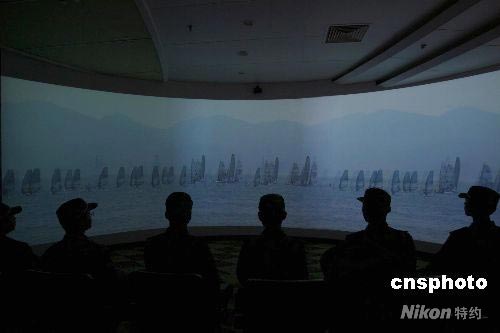 北京奧運會開幕日益臨近,承擔(dān)奧帆賽安保任務(wù)的青島邊防支隊官兵利用值勤訓(xùn)練間隙參觀奧帆中心展館,了解奧運會及奧帆賽的相關(guān)知識。第29屆奧運會帆船帆板比賽將于2008年8月9日至23日在青島國際帆船中心及周邊水域舉行。 中新社發(fā) 王瑤 攝
