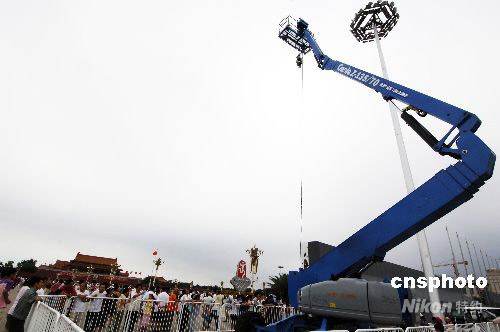 7月29日,美國(guó)一家電視臺(tái)動(dòng)用云梯空中拍攝天安門(mén)廣場(chǎng)迎奧運(yùn)盛況。據(jù)報(bào)道,北京在奧運(yùn)會(huì)期間對(duì)天安門(mén)廣場(chǎng)上的直播報(bào)道亮起綠燈,不過(guò)僅限于獲得奧運(yùn)轉(zhuǎn)播權(quán)的官方電視公司。根據(jù)相關(guān)協(xié)議,外媒直播報(bào)道時(shí)段被安排在早上6點(diǎn)到10點(diǎn)以及晚上9點(diǎn)到11點(diǎn)。其他媒體也可以在天安門(mén)廣場(chǎng)進(jìn)行報(bào)道,但不能直播。 中新社發(fā) 王東明 攝