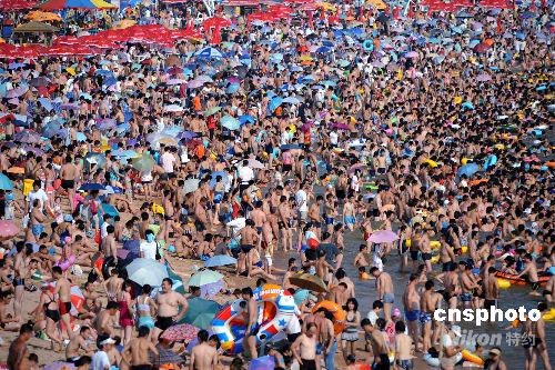 奧運會臨近,中外游人紛紛來到奧帆賽舉辦地青島觀光看奧帆賽。臺風(fēng)“鳳凰”影響過后,青島各海濱浴場陸續(xù)向游人開放。八月三日,青島第一海水浴場的中外游人突破十萬人,是今年入夏以來青島第一海水浴場的最高紀(jì)錄。中新社發(fā) 曲連遵 攝