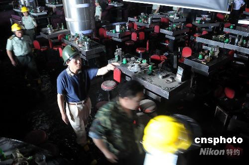 9月20日夜,位于深圳龍崗舞王俱樂部發(fā)生特大火災(zāi)事故。圖為火災(zāi)事故現(xiàn)場一片狼藉。中新社發(fā) 陳文 攝