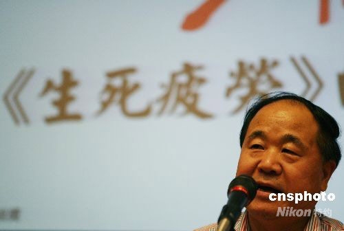 九月二十一日,中國(guó)內(nèi)地著名作家莫言在香港中央圖書館暢談《生死疲勞》創(chuàng)作過(guò)程。這部小說(shuō)日前在香港獲得第二屆“紅樓夢(mèng)獎(jiǎng)”!凹t樓夢(mèng)獎(jiǎng)”兩年一評(píng),旨在獎(jiǎng)勵(lì)世界各地出版成書的杰出華文長(zhǎng)篇小說(shuō)作品。中新社發(fā) 武仲林 攝