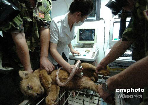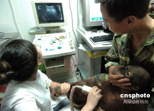 9月24日下午,杭州一家動(dòng)物醫(yī)院為杭州野生動(dòng)物園的一只幼年非洲獅和兩只幼年紅毛猩猩進(jìn)行腎結(jié)石檢查,檢查結(jié)果,這三只小動(dòng)物均有輕度至中度的腎結(jié)石癥狀。 據(jù)了解,該動(dòng)物園近兩年來(lái)一直選用“三鹿”牌奶粉輔助喂養(yǎng)部分動(dòng)物幼崽,今年上半年以來(lái),喂食奶粉的幼年獅、虎、猩猩、絨猴等普遍出現(xiàn)排尿淋漓,尿液發(fā)黃、渾濁,營(yíng)養(yǎng)不良等癥狀。中新社發(fā) 施健學(xué) 攝