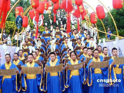 2008年9月27日,四川•南充第二屆三國文化節(jié)在南充萬卷樓景區(qū)隆重開幕。三國文化節(jié)以豐富多彩的文化活動(dòng),充分展示南充“三國文化之源”的深厚內(nèi)涵與璀璨的文化特色。中新社發(fā) 陳宏 攝