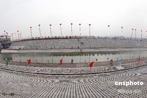 9月28日,南水北調(diào)中線京石段應(yīng)急供水工程(以下簡稱京石段工程)建成通水儀式在河北省和北京市交界的北拒馬河暗渠工程現(xiàn)場舉行。河北省崗南、黃壁莊兩水庫的水,經(jīng)南水北調(diào)中線京石段工程抵達(dá)北京,這標(biāo)志著南水北調(diào)工程建設(shè)取得階段性成果,中線京石段工程開始運行并發(fā)揮效益。中新社發(fā) 杜洋 攝