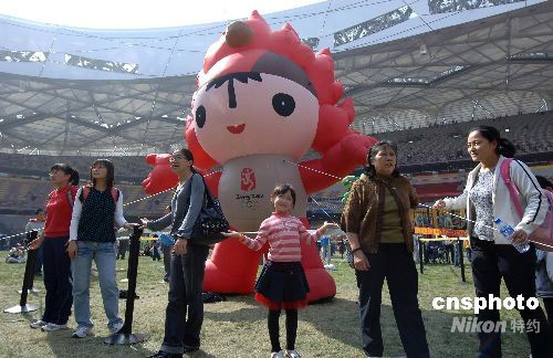 9月30日,“十一”國慶長假第二天,旅游黃金周進(jìn)入高潮,到北京旅游的各地游客都渴望進(jìn)入北京奧運(yùn)會主體育場“鳥巢”,有幸購到參觀票的游客在鳥巢盡情玩耍拍照。 中新社發(fā) 鄒憲 攝