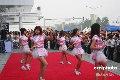 10月2日,奧運(yùn)寶貝表演啦啦操!笆弧秉S金周期間,北京奧林匹克公園內(nèi),曾在“鳥巢”、水立方為2008奧運(yùn)會(huì)比賽表演的三支奧運(yùn)寶貝,為中外游客進(jìn)行啦啦操表演,為節(jié)日的奧林匹克公園營造奧運(yùn)氣氛。中新社發(fā) 陳曉根 攝