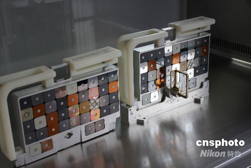 10月6日,中科院蘭州化物所科研人員將暴露于太空環(huán)境的空間材料試驗樣品與地面模擬空間環(huán)境試驗的樣品進行對比。專家們希望通過試驗,能夠找出科學、合理、準確的實驗參數(shù),建立相關實驗規(guī)范,最終通過地面模擬裝置,能夠知曉太空會發(fā)生怎樣的變化,指導發(fā)展高性能空間潤滑材料。中新社發(fā) 殷春永 攝