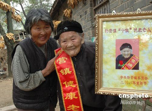 10月7日,河南省南陽市朱屯村101歲的曾廣蘭接過自己的節(jié)日照片。10月7日是一年一度的重陽節(jié),河南省南陽市臥龍區(qū)陸營鎮(zhèn)為評出的10名90歲以上的“十佳健康老人”送去了照片匾牌和重陽節(jié)禮物,表達對老人的節(jié)日祝福。中新社發(fā) 熊運彬 攝