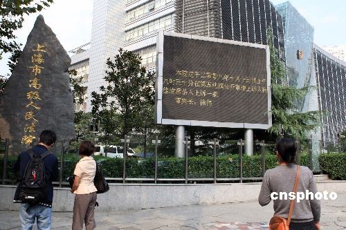 圖為上海高院門口安檢森嚴(yán),吸引騎車路人張望。