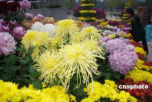10月13日,游客在北京植物園菊花展區(qū)內流連忘返,頻頻發(fā)出贊嘆之聲。在本屆花展中,公園將菊花作成了各種菊花塔、盤龍造型;同時還用菊花打造了色彩明快的花帶。目前園中有1000多個品種10萬株菊花。中新社發(fā) 九州 攝