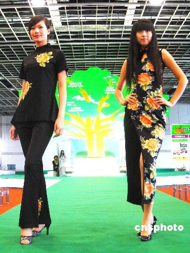 10月16日,在南京開幕的第八屆中國國際糧油產(chǎn)品及設(shè)備技術(shù)展覽會上,各種用糧食纖維做成的服裝展示,成為本屆展會的一大亮點。中新社發(fā) 谷昌旺 攝