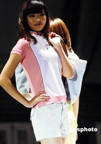 10月22日晚,2009春夏中國(guó)T恤流行趨勢(shì)發(fā)布暨“天然杯”第六屆國(guó)際T恤設(shè)計(jì)大賽作品展在上海舉行,該大賽吸引來(lái)自韓國(guó)漢陽(yáng)大學(xué)、ESMOD國(guó)際服裝學(xué)院、萊弗士服裝學(xué)院等近百所高校的近3000幅作品。圖為模特展示院校T恤設(shè)計(jì)優(yōu)秀作品。中新社發(fā) 錢興強(qiáng) 攝