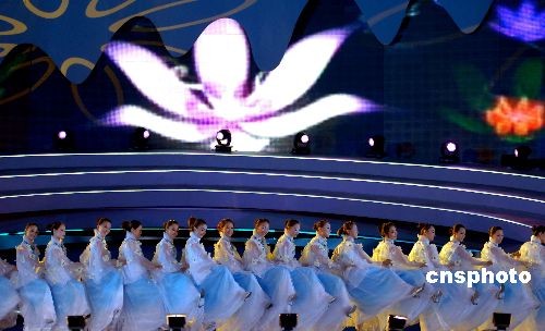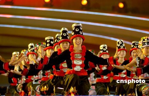 10月22日,廣西“南寧國際民歌藝術(shù)節(jié)開幕式晚會(huì)——大地飛歌·2008”在南寧民歌廣場上演。原生態(tài)的《壯族大歌》、《苗族大歌》、《侗族大歌》、《瑤族大歌》,經(jīng)過重新編排后更具魅力。除了廣西本地民歌以外,還有來自東盟各國的經(jīng)典民歌激情上演。整個(gè)舞臺(tái)流光溢彩,聲色動(dòng)人。中新社發(fā) 彭寰 攝