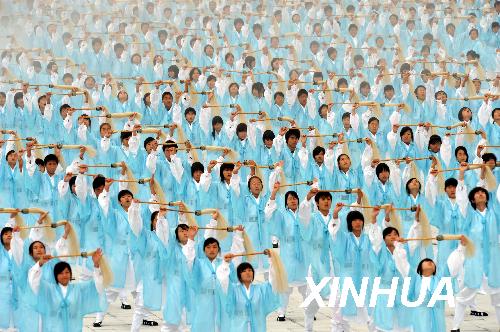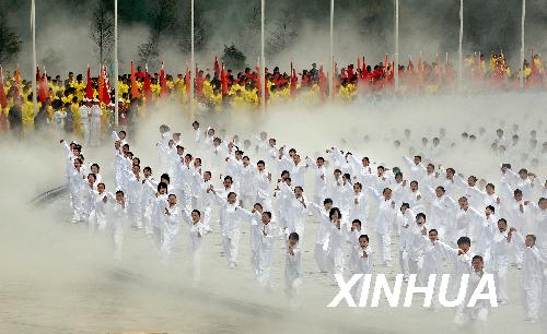 10月30日,太極拳愛(ài)好者在表演太極拳。當(dāng)日,第三屆世界傳統(tǒng)武術(shù)節(jié)系列活動(dòng)之一——“走進(jìn)武當(dāng)”萬(wàn)人舞太極在武當(dāng)山風(fēng)景區(qū)舉行。來(lái)自美國(guó)、英國(guó)、俄羅斯、澳大利亞和中國(guó)等69個(gè)國(guó)家和地區(qū)的近2000名武術(shù)愛(ài)好者,共同欣賞了這一大型武術(shù)表演。新華社記者余國(guó)慶攝