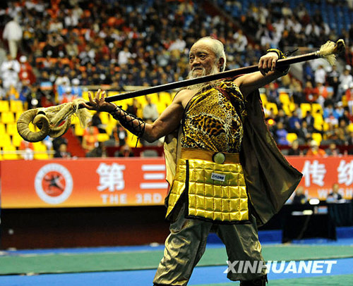 10月31日,88歲的劉子均在表演奇門兵器——羊角骶。當(dāng)日,正在湖北省十堰市舉行的第三屆世界傳統(tǒng)武術(shù)節(jié)開始武術(shù)比賽。來自中國(guó)武術(shù)協(xié)會(huì)代表隊(duì)88歲的劉子均習(xí)武70多年,他在比賽中表演的羊角骶藝驚四座。新華社記者余國(guó)慶攝