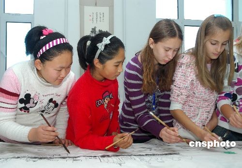 11月2日,來自俄羅斯布拉戈維申斯克市第十四中學的30名學生與黑龍江省黑河市第四中學師生共同舉辦感受中國傳統(tǒng)民族文化活動,以加深俄羅斯青少年對中國傳統(tǒng)民族文化的了解。中新社發(fā) 邱齊龍 攝