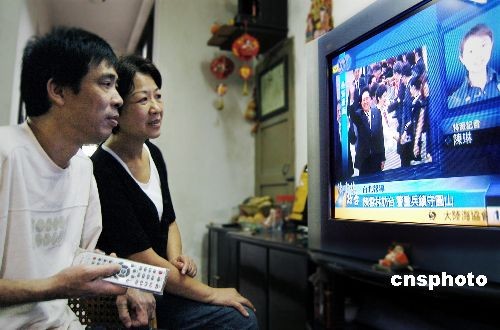 11月3日,僑鄉(xiāng)泉州市民在電視機前收看陳云林會長抵達臺灣桃園機場的實況轉播。今日,海峽兩岸關系協(xié)會會長陳云林率海協(xié)會協(xié)商代表團,展開在臺灣的歷史性訪問行程。中新社發(fā) 傅丹丹 攝